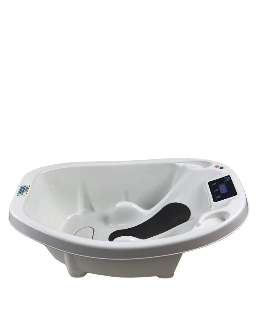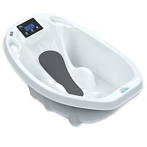“The Digital Scale & Thermometer 3-in-1 Infant Tub features a digital scale with a patented technology that reads your child’s weight with or without water. It also has a thermometer that monitors and displays the water temperature.”