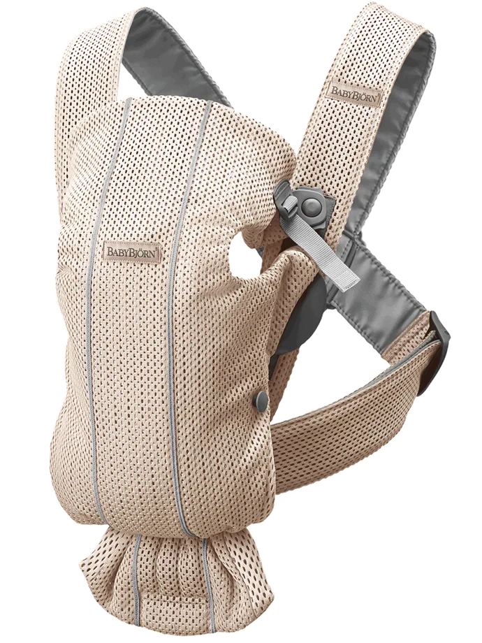 “The baby carrier for newborns. This smaller version of the original Baby Bjorn is made with super soft cotton and will keep your new baby close. It is comfortable and easy to use. The front can unfasten to easily remove your sleeping bundle of joy.