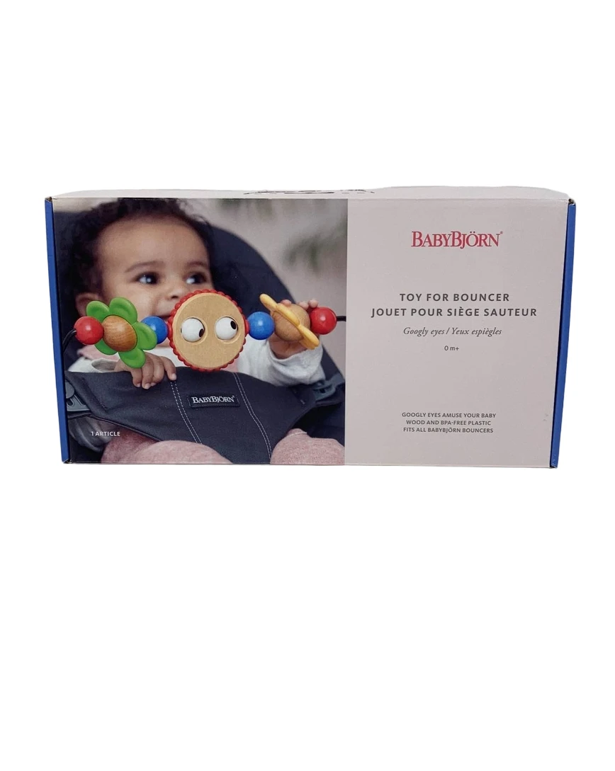 “A cute and fun toy that attaches to your favorite Bjorn bouncer! Its brightly colored shapes are fascinating for your baby to look at and play with. The toy bars features are easy to spin around, and the funny eyes will make your baby smile and laugh. Playing also helps your baby discover physical capabilities and develop motor skills. The toy bar is easy for a grown-up to attach and remove, and fits both Bouncer Balance Soft and Bouncer Bliss.”