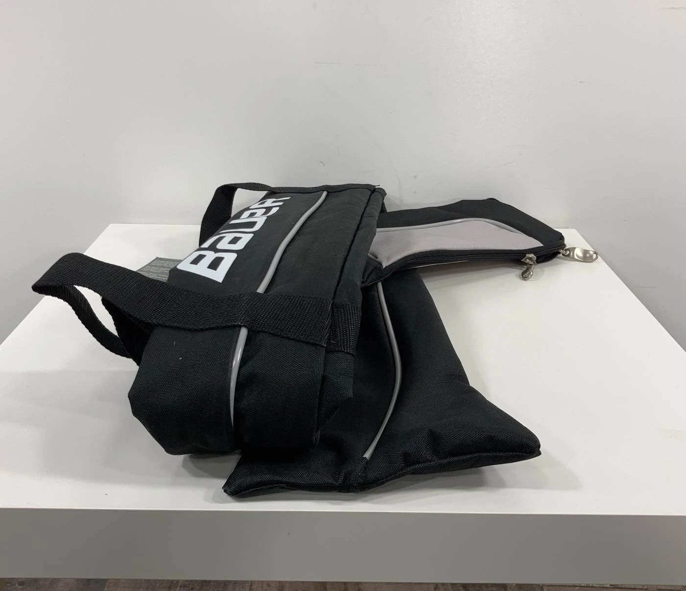 “Conveniently carry around your hockey sticks with this carrying bag. Carriers up to three sticks. Has a padded blade pocket. “