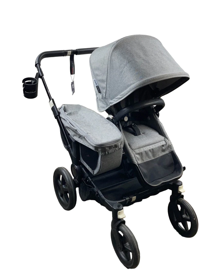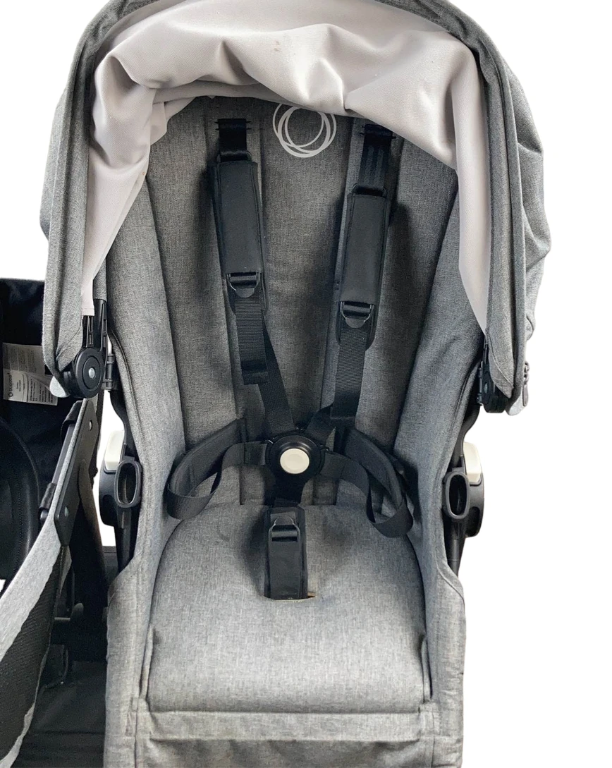 “Ready to get out and explore the world with your little ones? This intuitive stroller works with you to make everything easier, like an extra hand when you need it most. Easy to use, a dream to navigate, and packed with convenient features- Bugaboo has done it again! The reversible seat can be arranged in many different configurations to fit your lifestyle- facing you, facing the world, facing each other, reclined in different ways, or change the seat out for the infant bassinet. You can also add another seat (not included) and use it as a double stroller (it expands!!). The narrow adjustable frame fits through doorways with ease, and folds easily and compactly for storage and transport. Features extendable sun canopies, a large under-seat storage basket, an adjustable handlebar, and rain cover.”