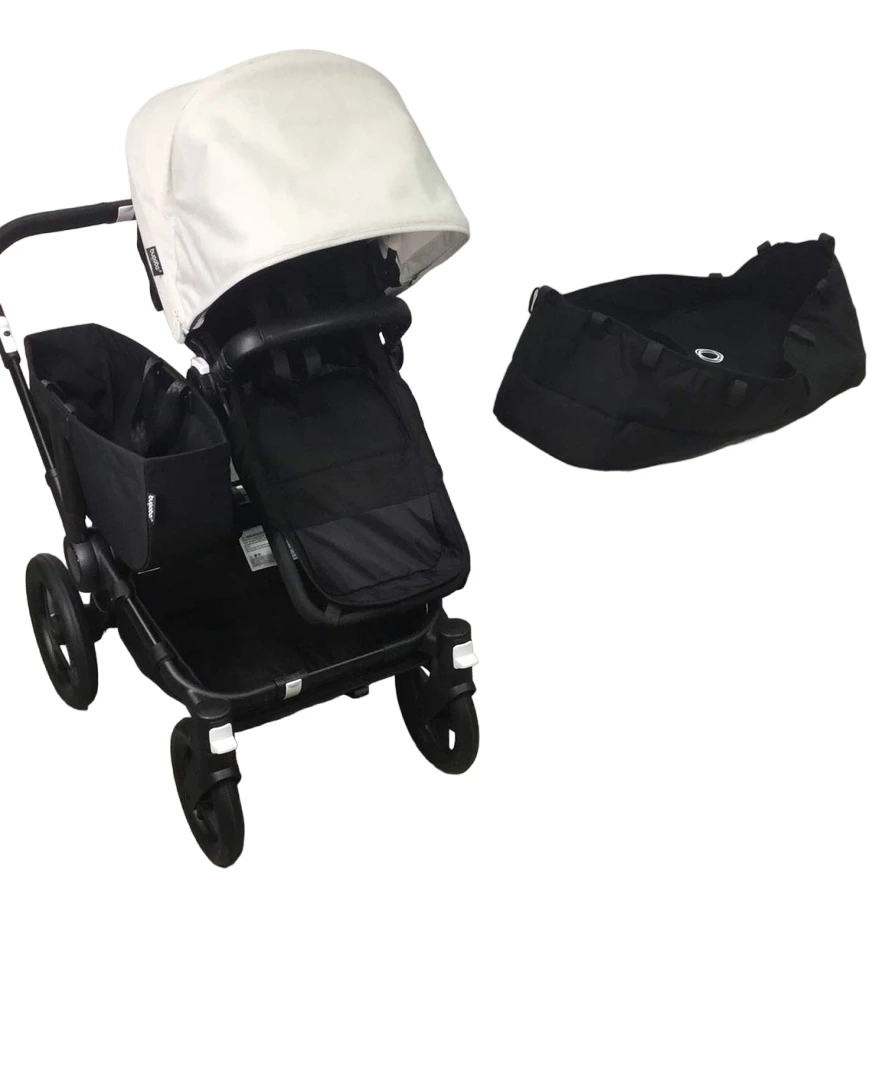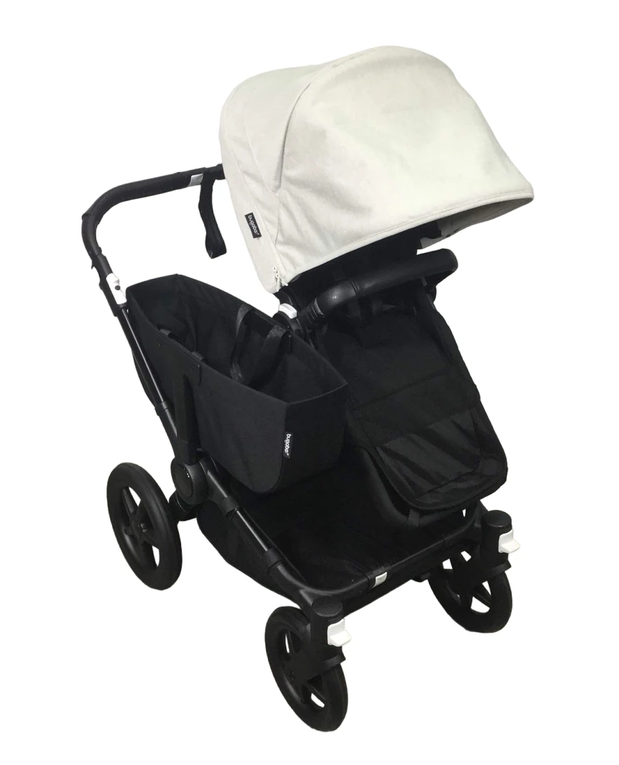 “This side by side double stroller has you covered! Keep your little ones riding next to each other from birth to toddler years. Converts from single to double in just 3 clicks! Fits through most standard doorways and offers plenty of storage in basket. Face the bassinet and toddler seat the same or opposite directions. Perfect for growing families!”