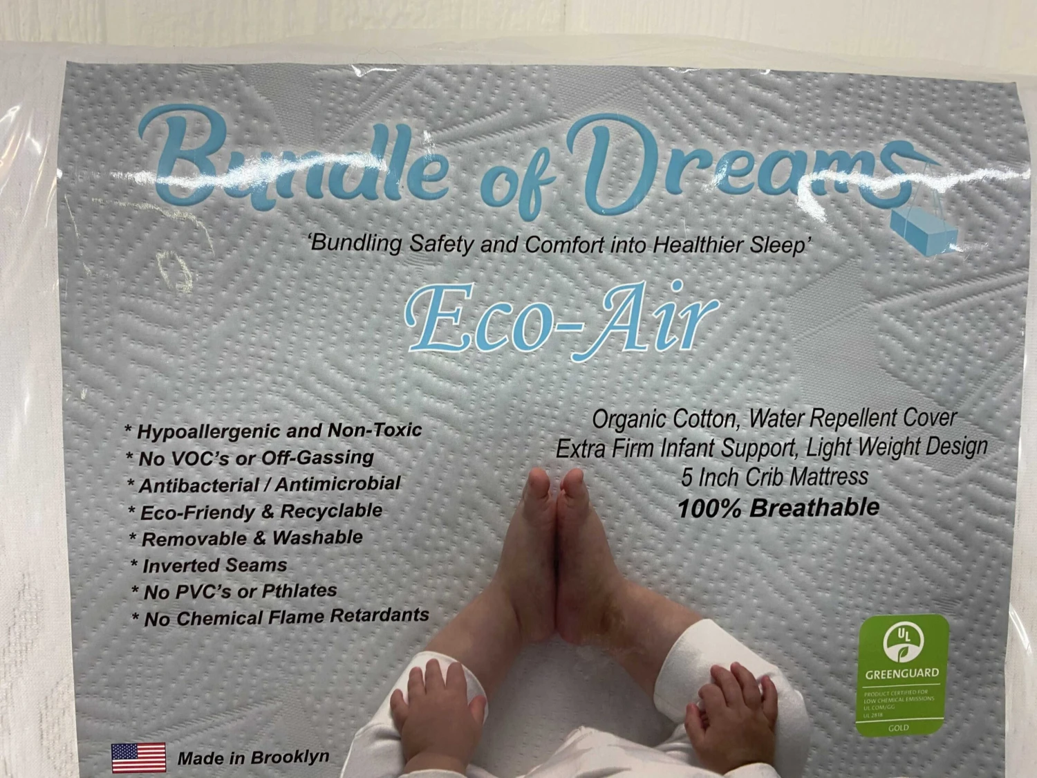 Bundle of Dreams Eco-Air Organic Crib and Toddler Bed Mattress, Breathable, Hypoallergenic