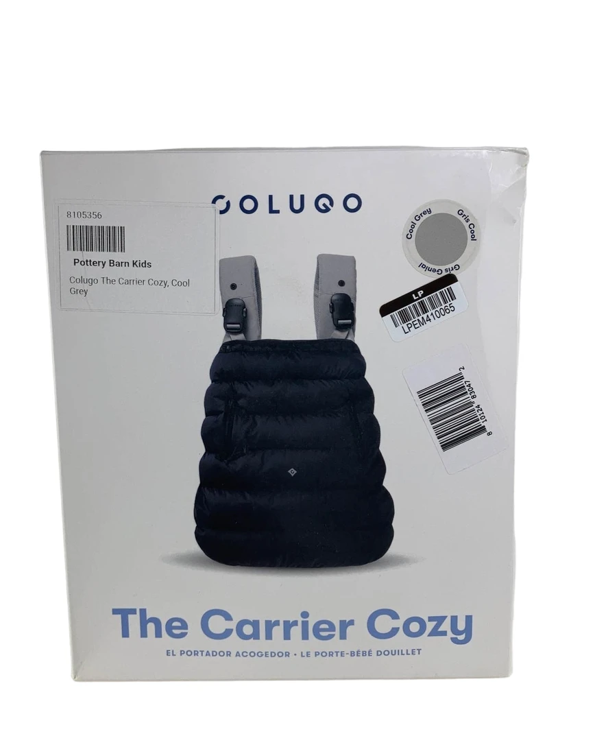 “Attach this water resistant cover to baby carrier. Includes a detachable hood and hand warmer pocket.”