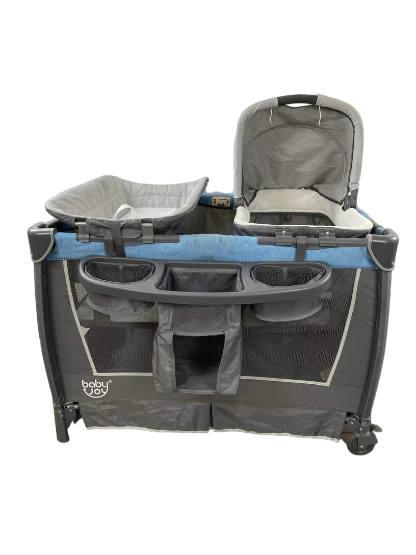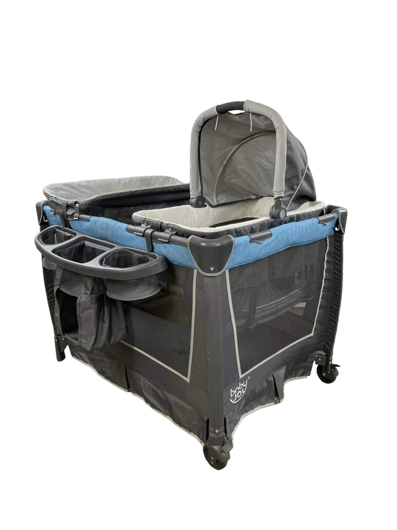 “A perfect portable playard that can be easily moved from room to room. Features flexible wheels and attachable bassinet.”