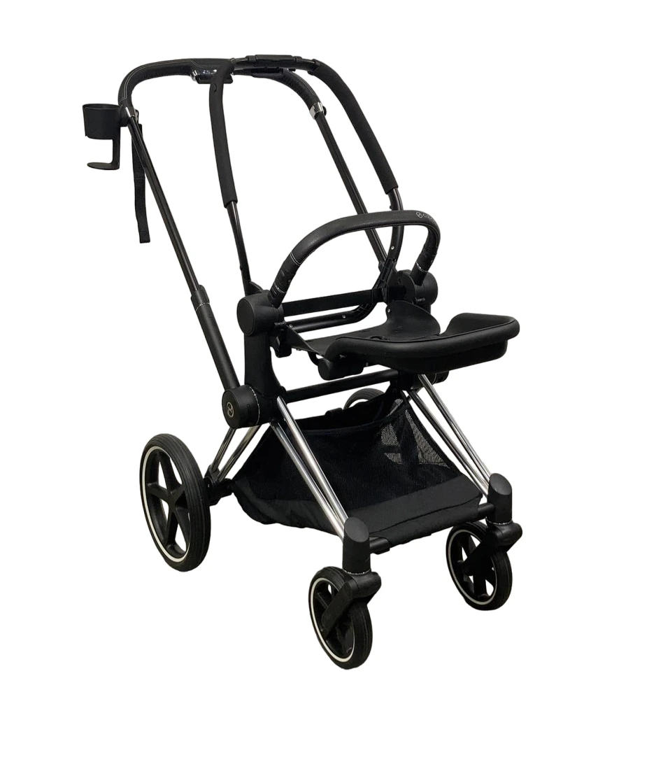 “This stylish and sleek stroller frame can fit three different seat options, depending on your kid’s age. You can attach: The Priam Lux Carry Cot, the Cloud Q infant car seat, or the Priam Seat Pack. Each is purchased separately.”