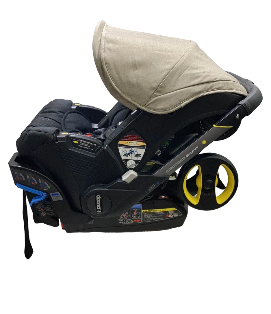 “All the great features of a Doona infant car seat/stroller combo but with exclusive PBK features. Includes exclusive canopy and essentials bag to carry additional items conveniently.”