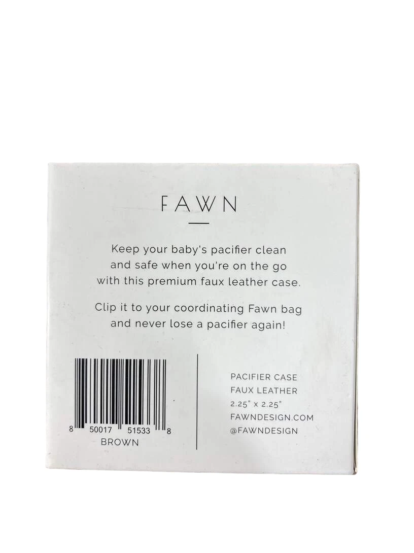“Keep pacifiers clean on the go in the diaper bag while stored in this faux leather case.”