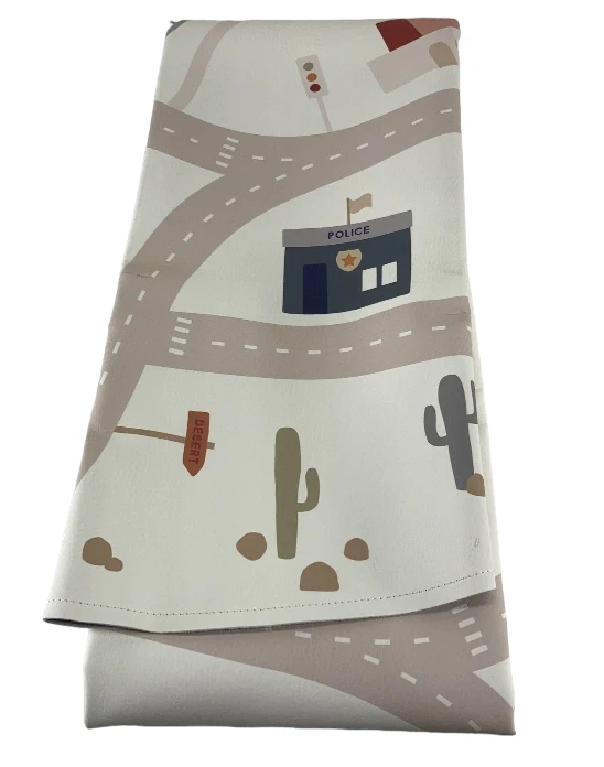 “A large water resistant play mat to gather and play. Perfect for indoors and outdoors. “