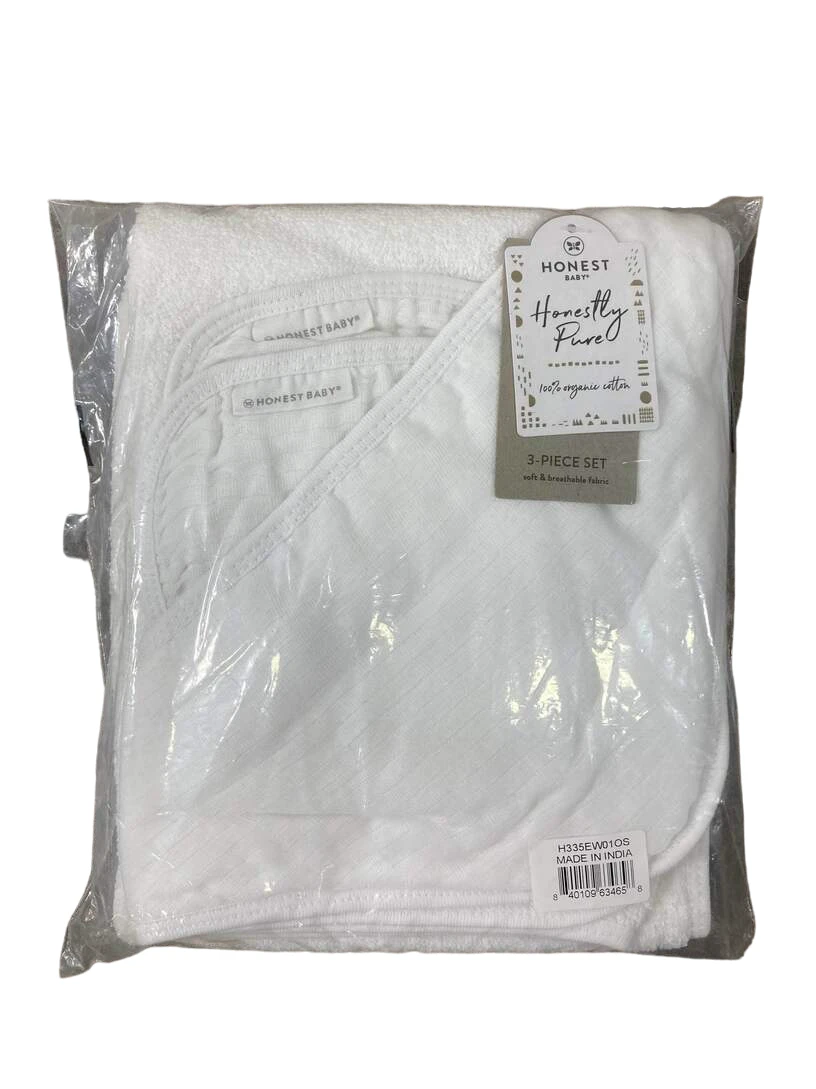 “This great set has 2 washcloths and hooded towel for bath time. Made from 100% organic cotton.”