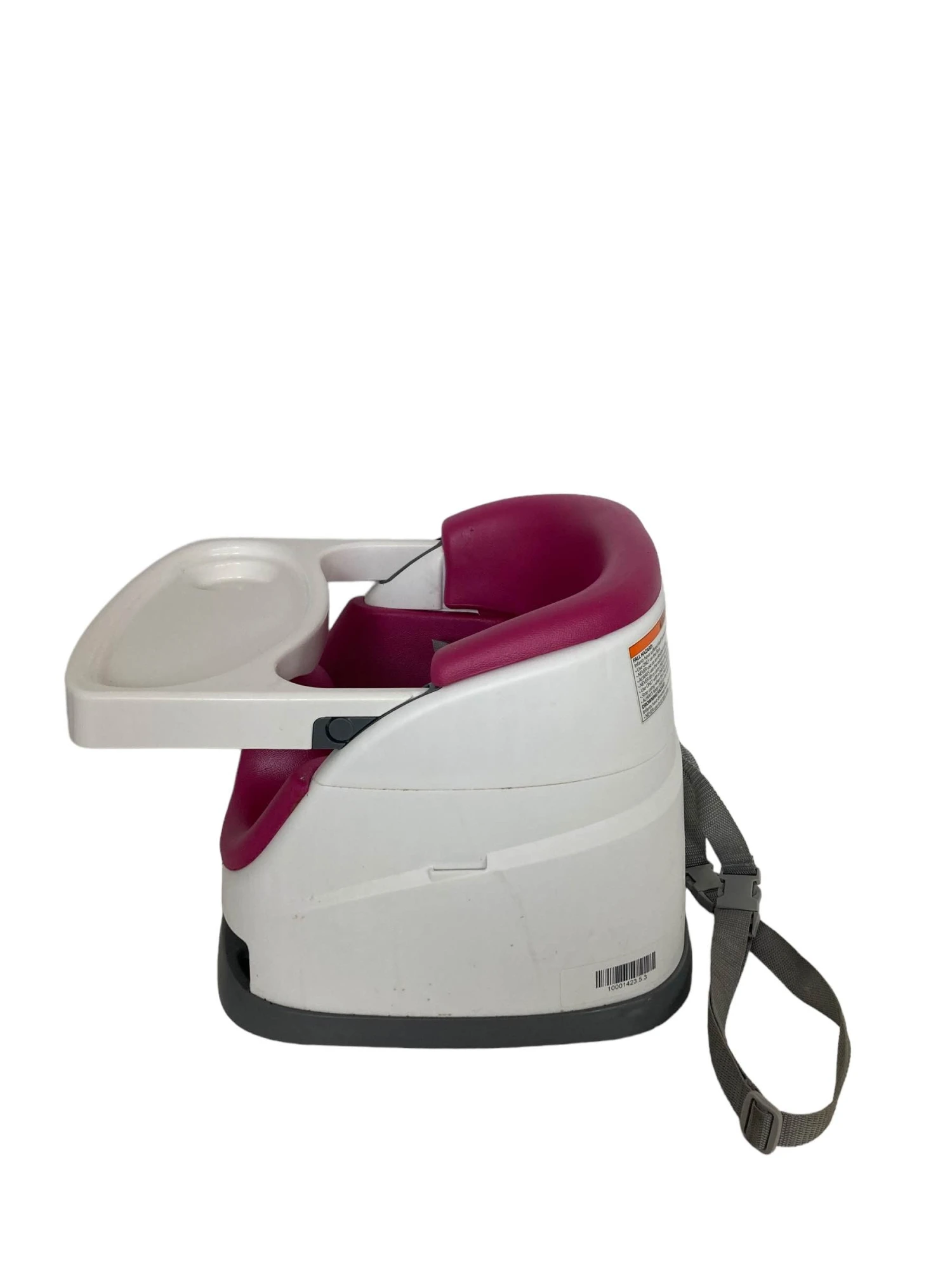 “This booster easily clips onto any chair so your little one can join you at the table. You can also set it on the floor as your little one learns to sit! The tray provides a convenient surface for play or feeding and can be tucked away in the convenient built in storage compartment when not in use. “