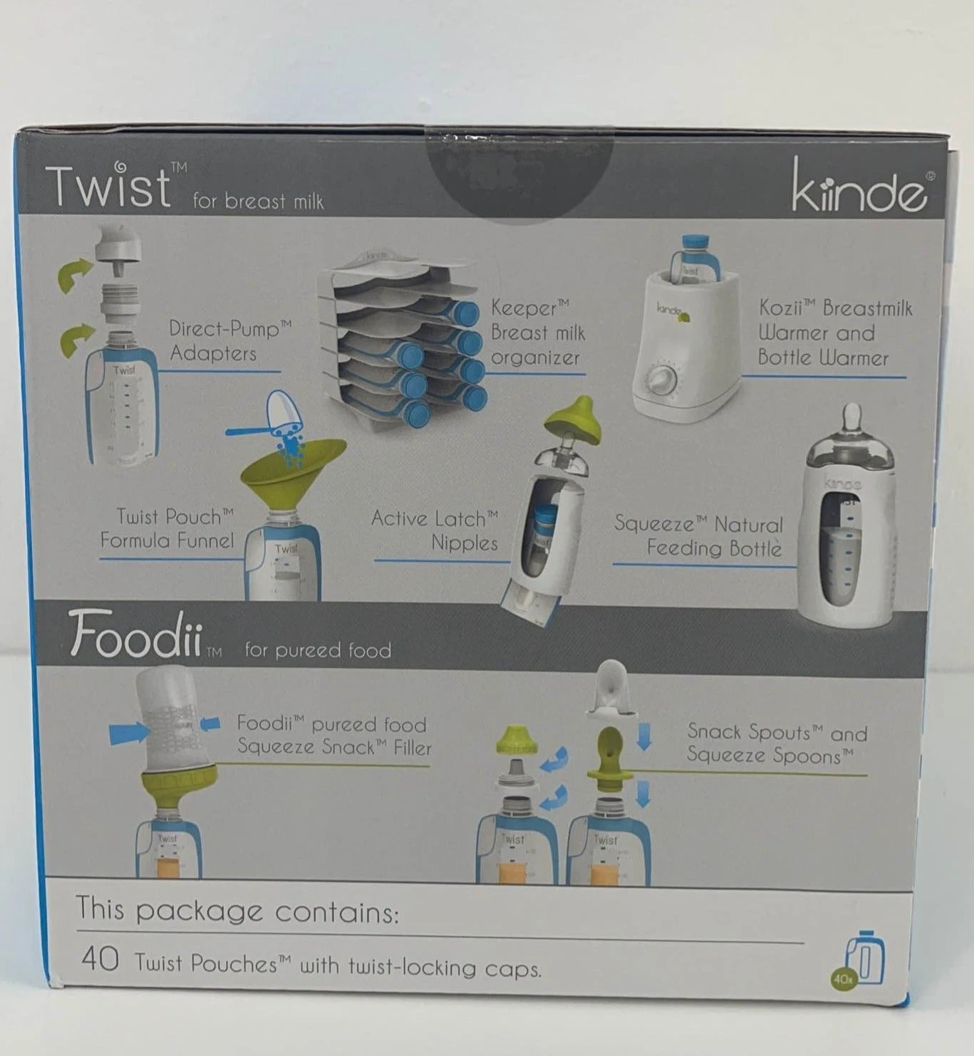 “Use these twist pouches to store, organize, warm and feed breast milk, formula, and food. They can be used with most pumps from major brands and with other Kiinde accessories.”