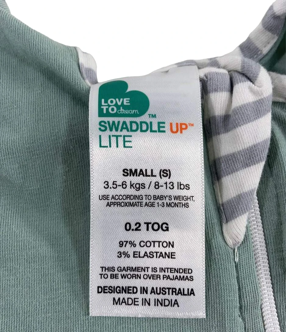 “Perfect for warmer weather this lightweight swaddled has been designed for room temperatures between 75°F & 81°F. Quickly and easily create a comfortable cocoon around your baby. This is the only sleep sack that allows babies to sleep with their arms up, allowing them easy access to their hands for self soothing. The snug fit keeps baby feeling secure and comforted, and the two-way zipper allows for easy diaper changes.”