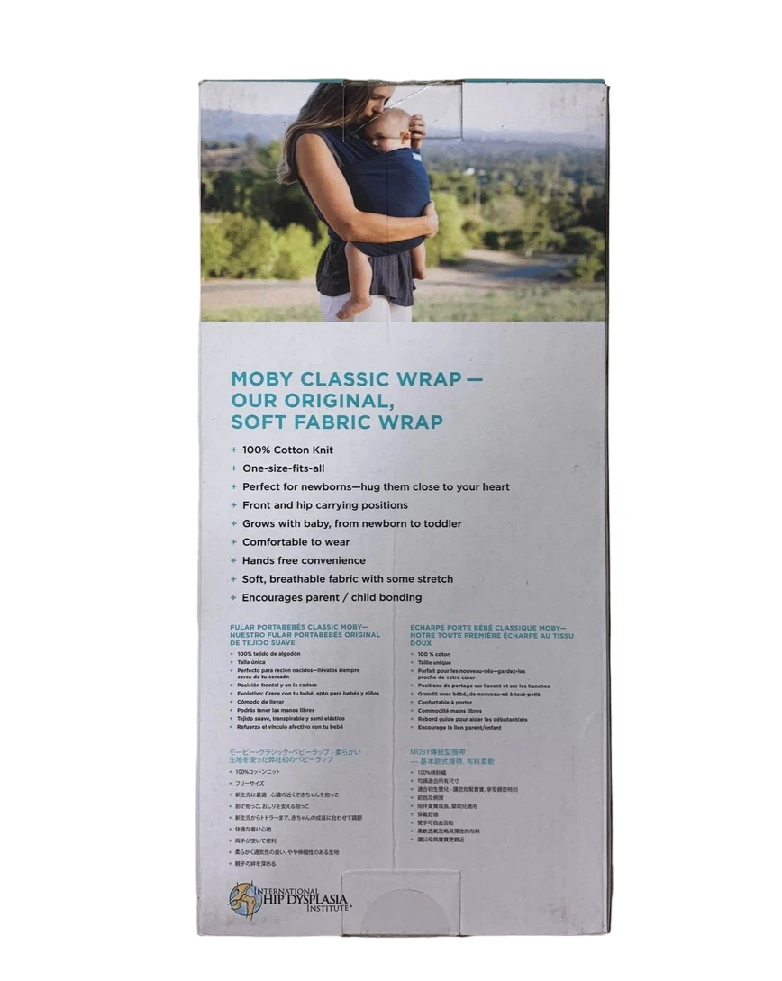 “This versatile wrap will quickly become your favorite. Keeping your baby close by gives you the hands-free hold for those lovely morning walks, cooking, or getting things done around the house. There are several ways you can wear your baby so that this wrap will grow with your little one! Machine washable and easy to carry with you.”