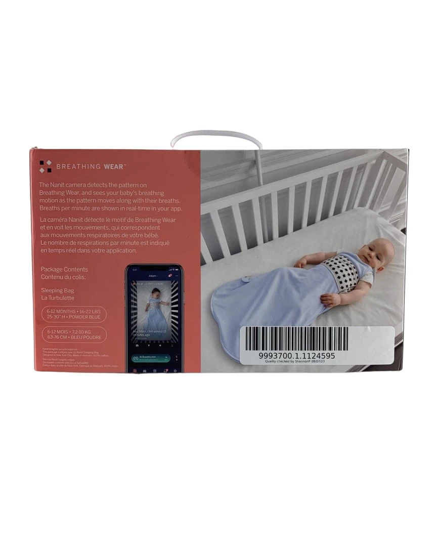 “The Breathing Wear sleeping bag works exclusively with the Nanit Plus camera to monitor your baby’s breathing motion with no sensors on their body. Nanit Plus tracks breaths per minute by reading subtle movements in the fabric’s custom-designed pattern, and alerts you if your baby needs you.”