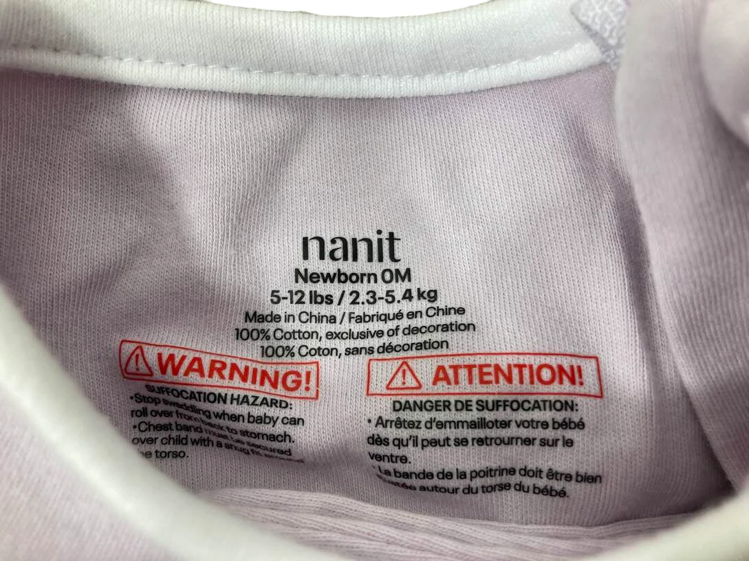 “The Breathing Wear Swaddle works exclusively with the Nanit Plus camera to monitor your baby’s breathing motion with no sensors on their body. Nanit Plus tracks breaths per minute by reading subtle movements in the fabric’s custom-designed pattern, and alerts you if your baby needs you.”