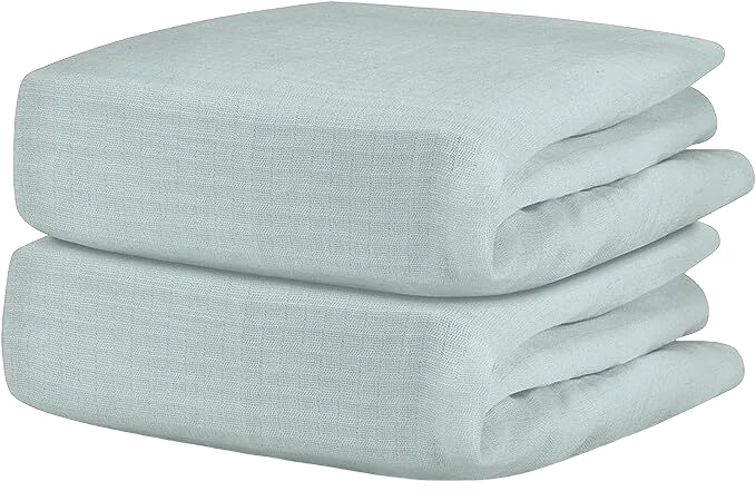 “Complete your nursery look with these crib sheets. 52″ x 28″.”