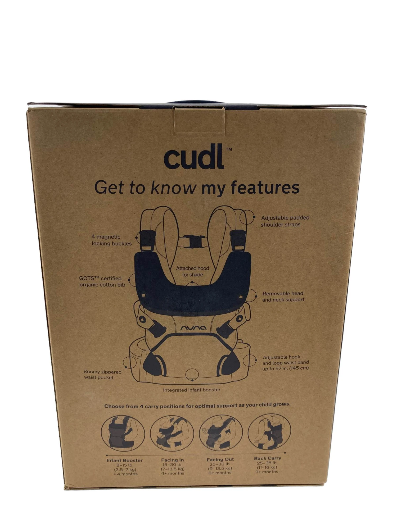 “Nuna’s first baby carrier will not disappoint. Carry baby in 4 different ways: front or back, facing in or out. Magnetic buckles make the carrier easy to secure, and a thick waistband provides comfort to the wearer. Includes an infant booster to provide support for babies up to 4 months, and is fully adjustable to accommodate up to 3 years old.”