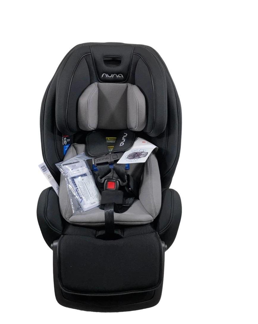 “This is the only car seat you’ll need, from birth to 4 plus years! It functions as a rear facing convertible, a forward facing convertible and a belt positioning booster. It’s easy to install and it’s safe and comfortable to ride in. Safe for use from 5-120 pounds and features 8 recline positions, 12 height positions, dual cup holders, and a breathable knit fabric. Please note, we do not guarantee compatibility.”