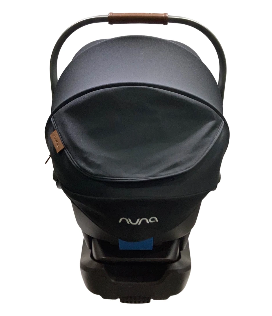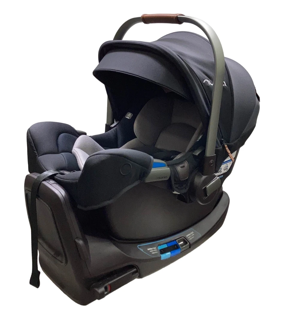 “This luxurious infant car seat is made with everything to keep your baby safe and comfortable. This infant seat features a large sun canopy with Dream drape technology (attaches over baby with magnets), 5 point safety harness, ability to be installed with a seat belt, four position recline, and compatibility with all Nuna strollers. This infant seat is designed for birth up to 32 lbs or 32 inches height.”
