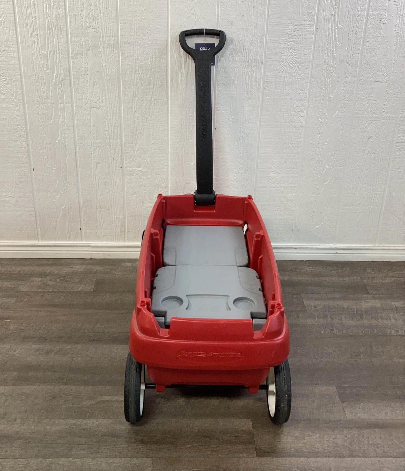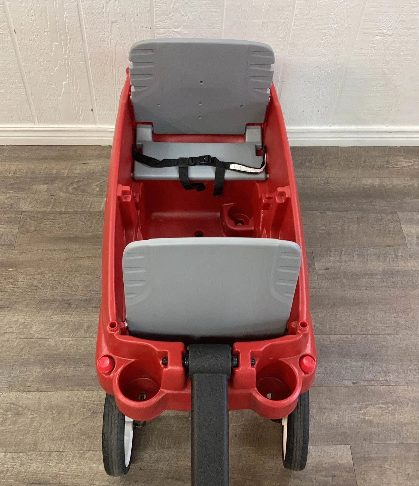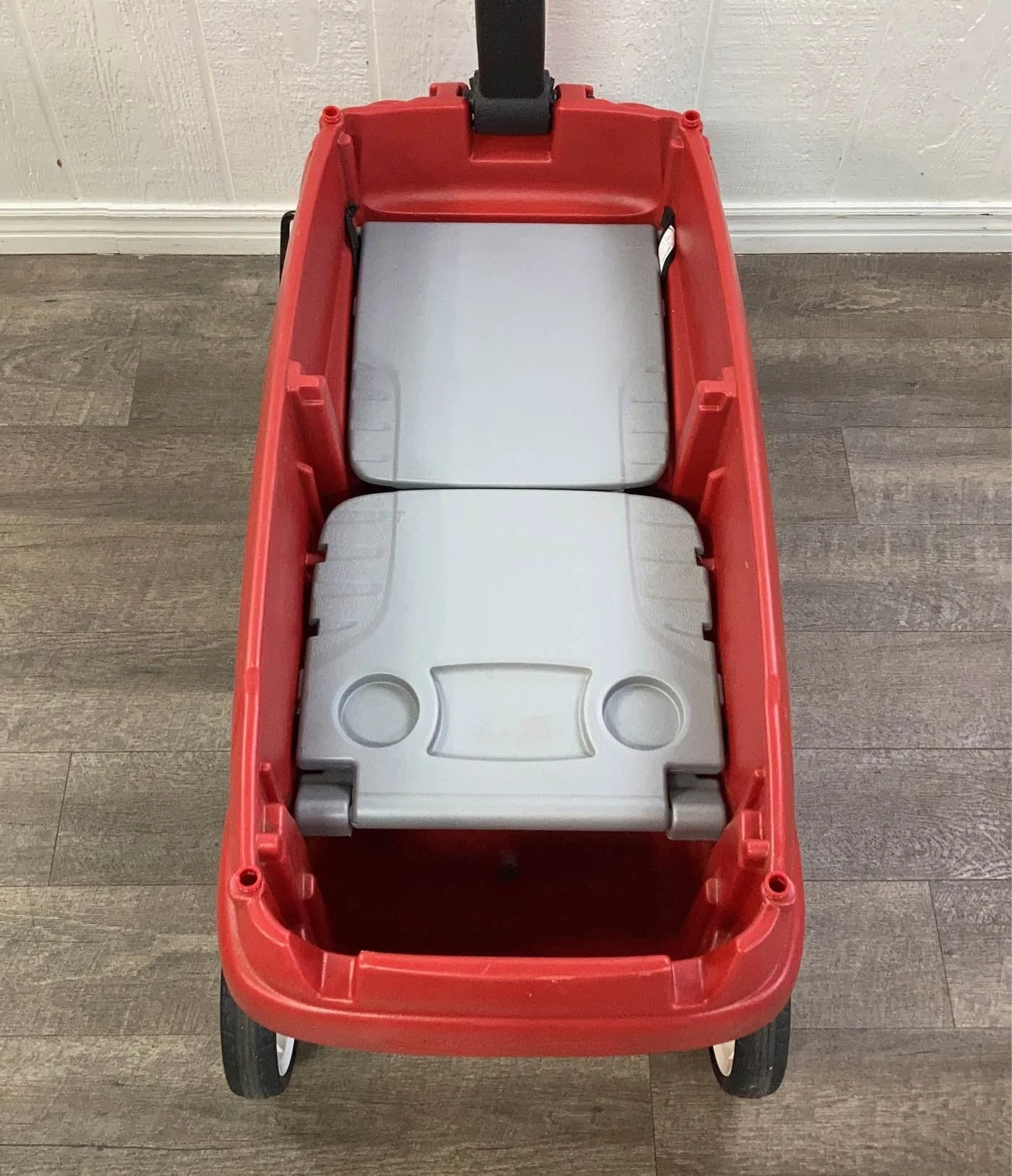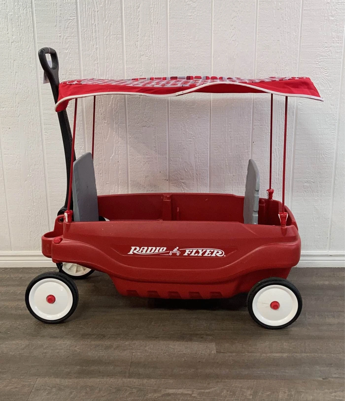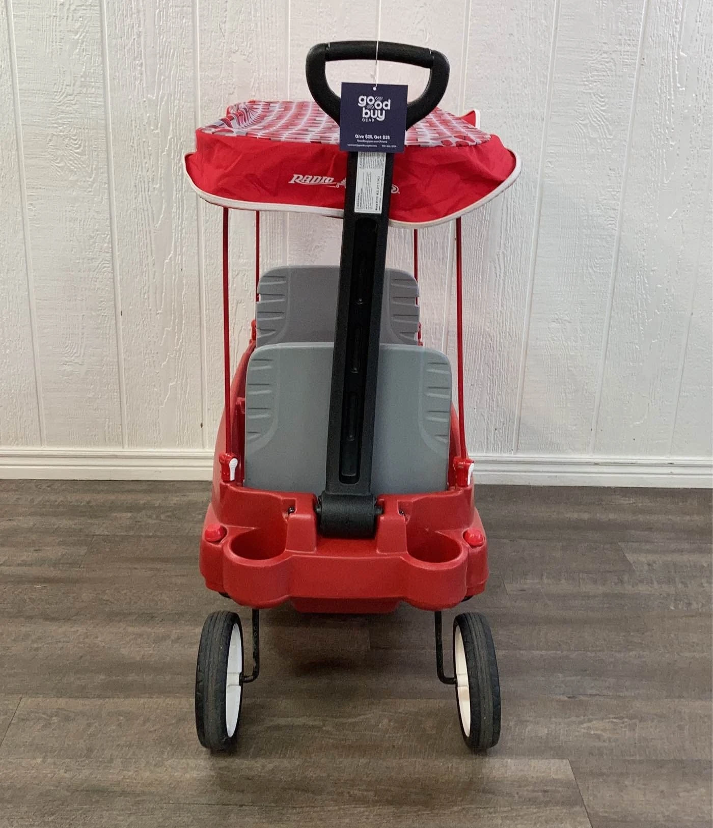 “This wagon combines the best in versatility and comfort, offering multiple riding options to fit your family’s changing needs. The Radio Flyer Ultimate Flex Wagon features 5 seating and storage options! The removable UV protection canopy is great for sunny days.”