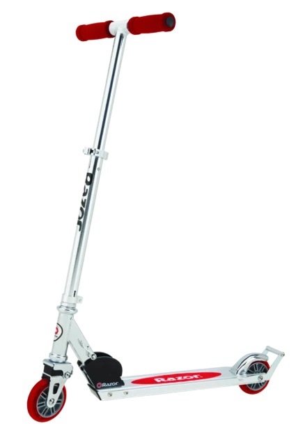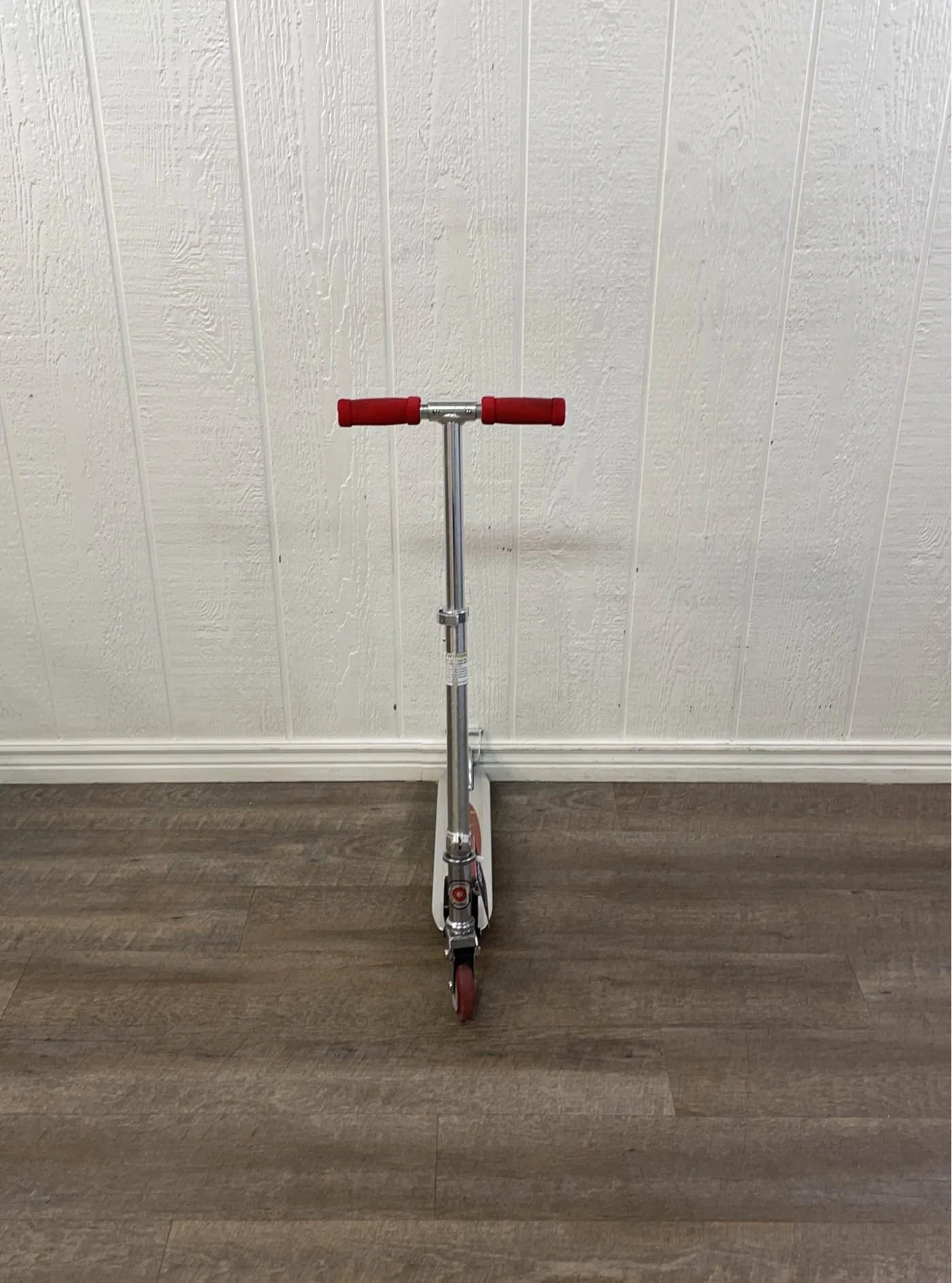 “Classic scooter with adjustable handlebar height to grow with your child from 5 years to adolescence. Folds for easy transport and storage.”