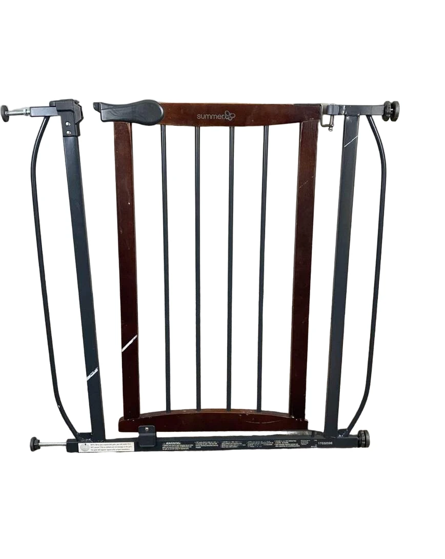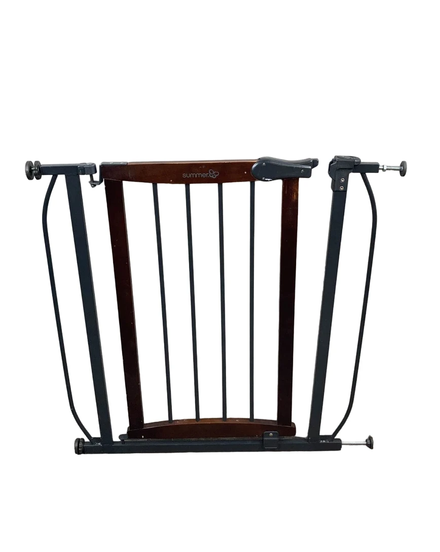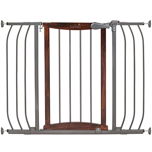 Summer by Ingenuity Anywhere Decorative Walk-Thru Pet and Baby Gate, 28″ – 42.5″ Wide, 30β Tall, Install In-between Rooms, Doorways and Stairways – Walnut Wood with Charcoal Metal Accents