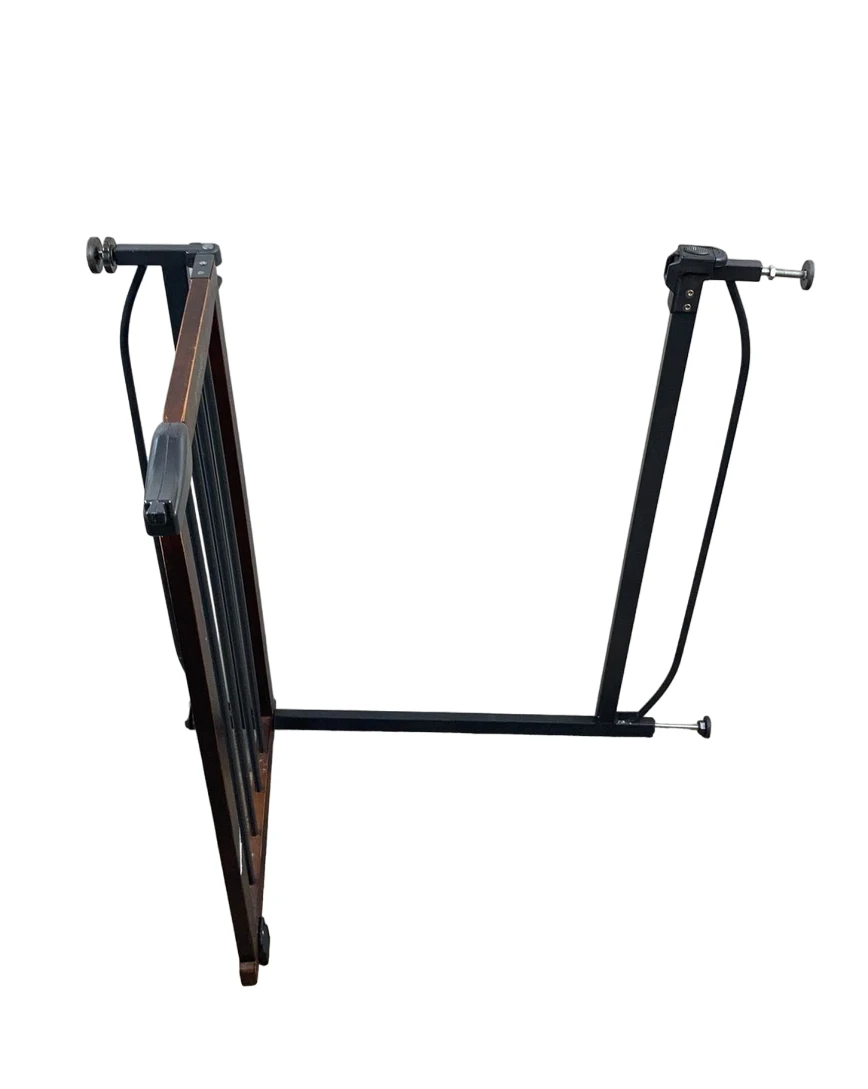 “Easily install this safety gate to keep babies or pets out of unwanted areas. Walk through door for convenience. 28β-42.5β wide, 30β tall.”