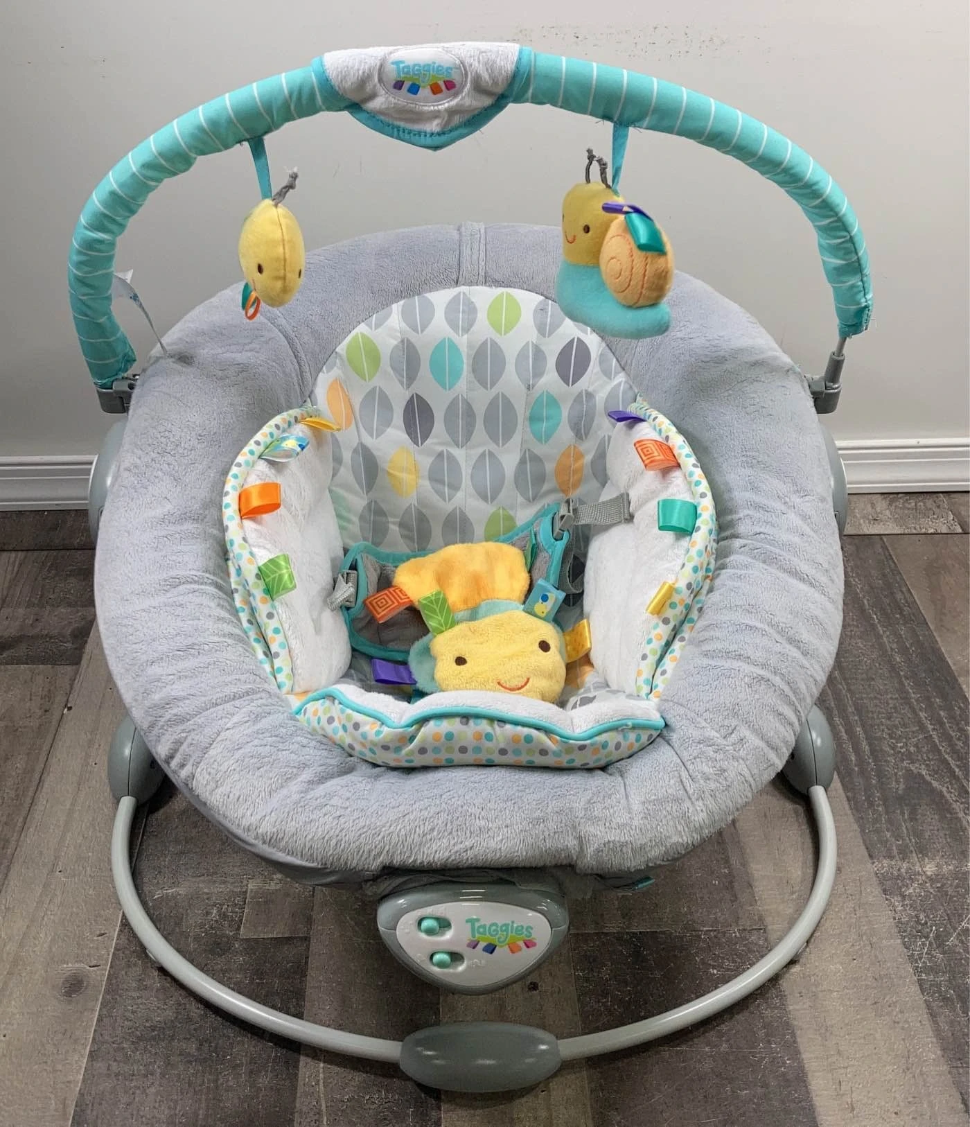 “With 2 reclining positions, calming melodies, nature sounds and vibrations, this bouncer was made to soothe and comfort your baby to sleep.”