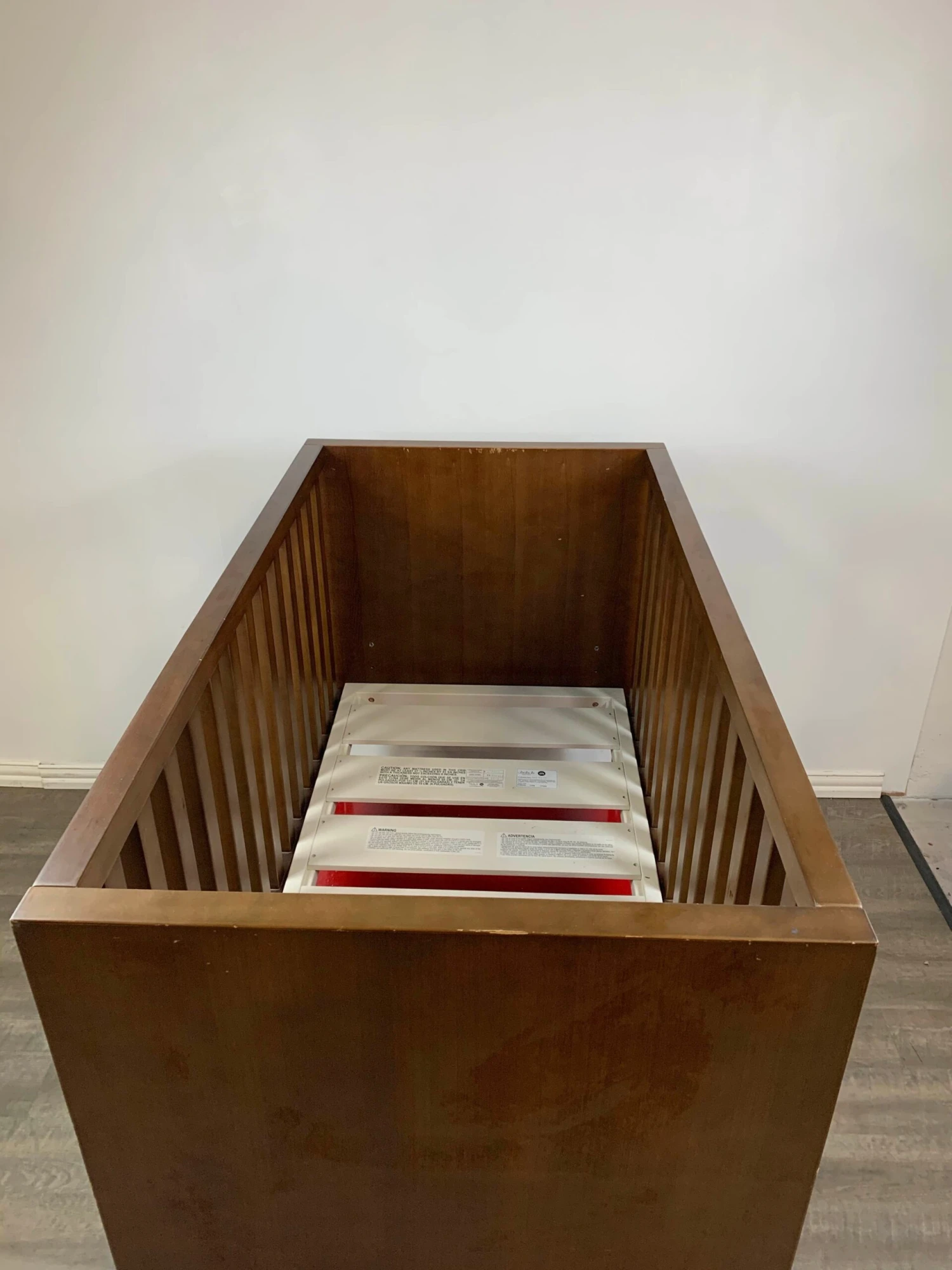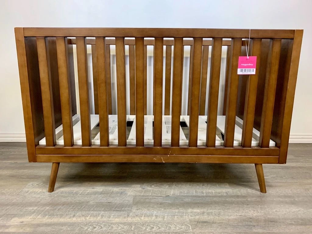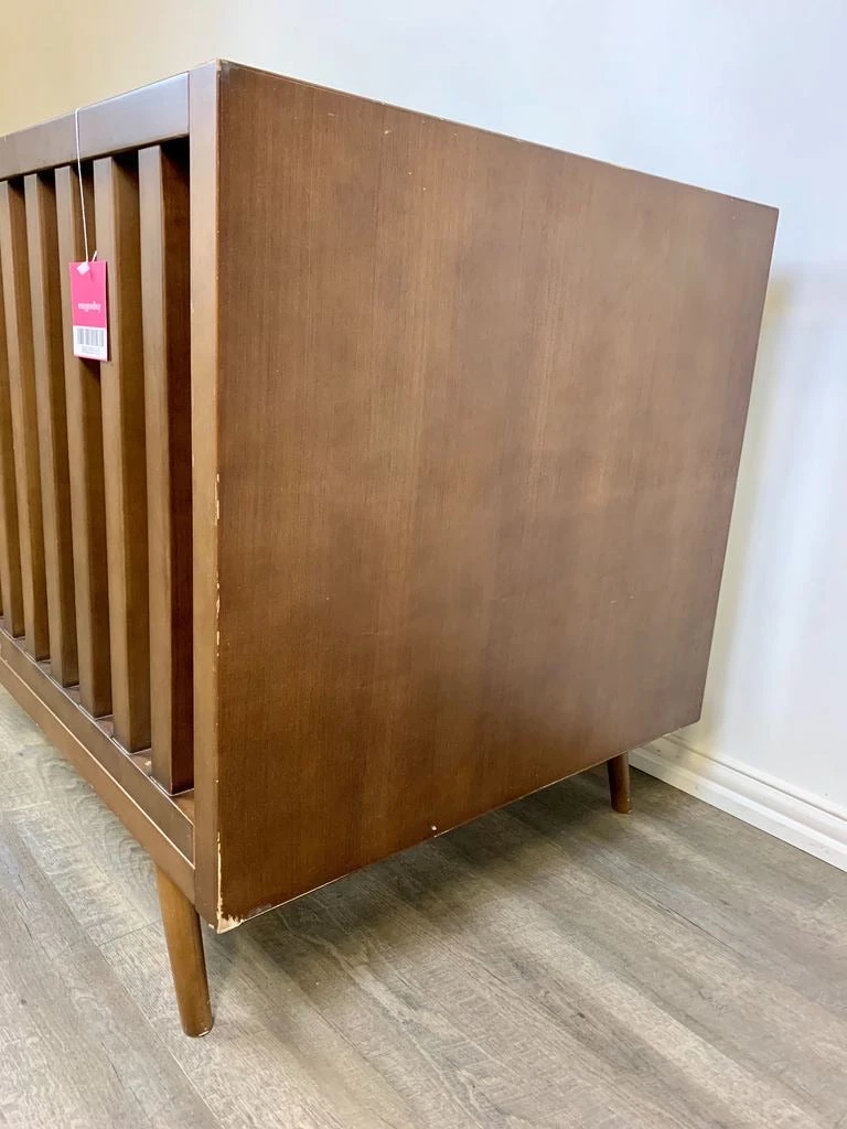 “Australian designed mid-century themed stylish and sophisticated crib with a solid wood design that is meant to last.”