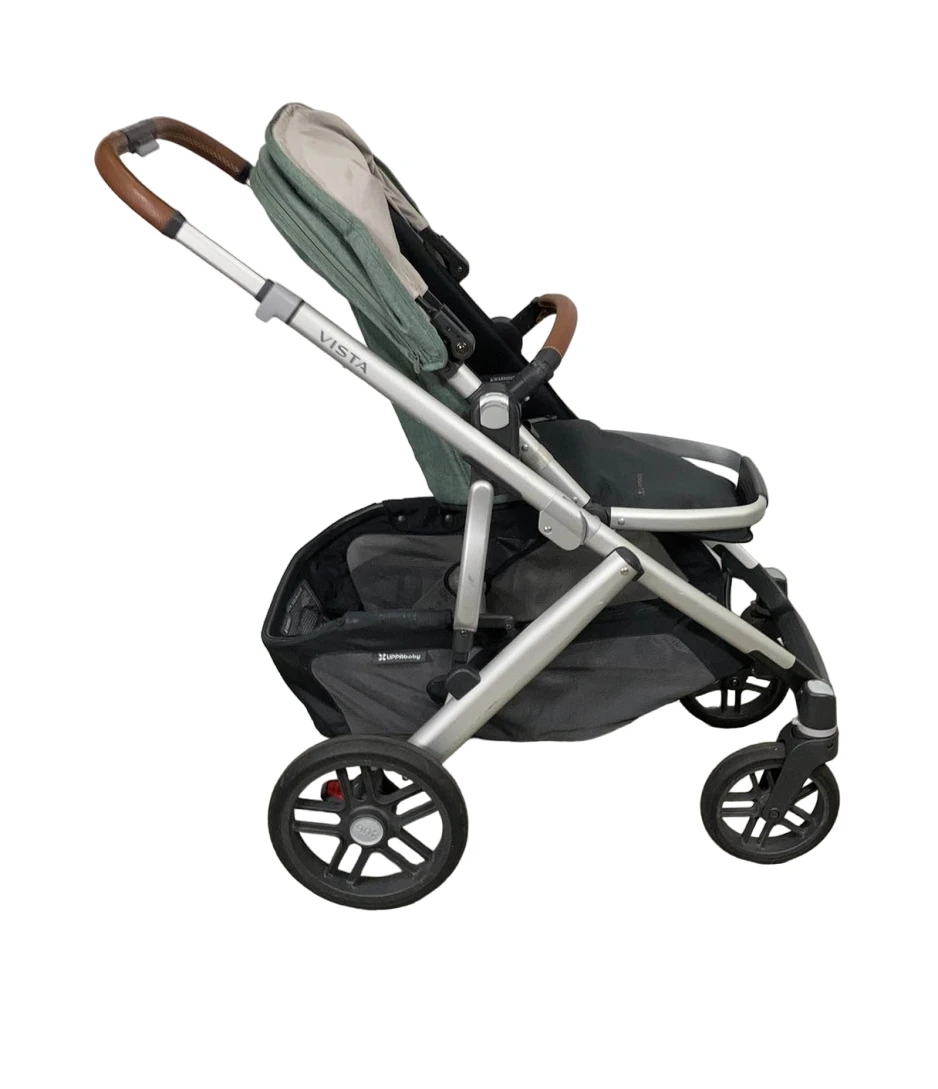 “Take a stroll in style with this upgraded model of the well-known VISTA stroller. It is designed to grow with your child from birth through the toddler years and beyond. This newer model features a more extended toddler seat for growing children, an upgraded extendable sun canopy with an easy zipper feature, a roomy storage basket with additional pockets, and a shock-absorbing system for a smoother ride. An amazing stroller that will not disappoint.”