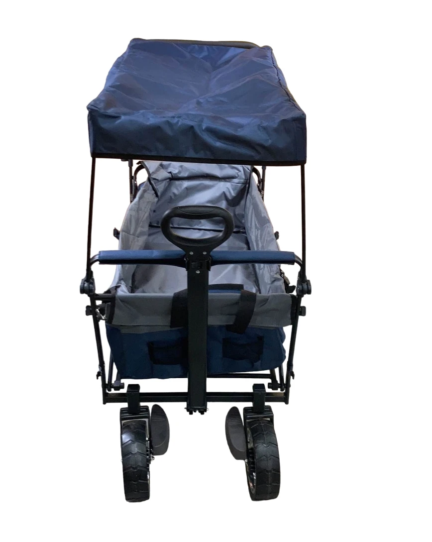 “This lightweight and easy to fold wagon will have to taking it everywhere with you. The canopy provides protection from the sun and is easy to remove and stow away if you desire. The wagon can hold up to 150 lbs and is the perfect size for 2 children.”