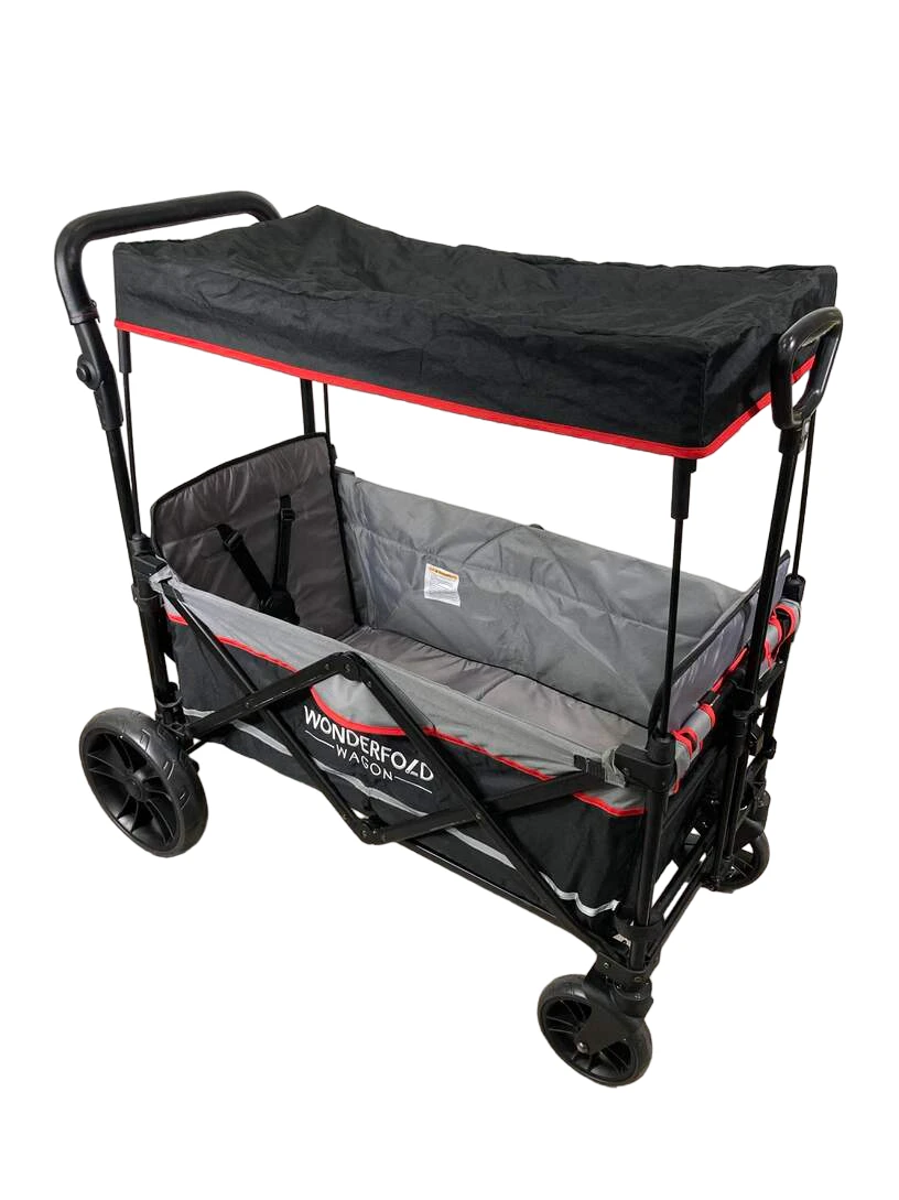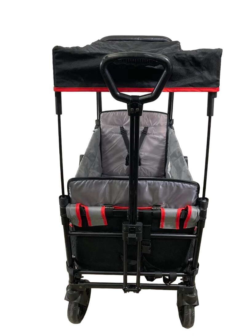 “This wagon is amazing! You can push it like a stroller or pull it like a wagon! It can hold up to 2 kids and includes harnessed seats with a large canopy that provides UV protection.”